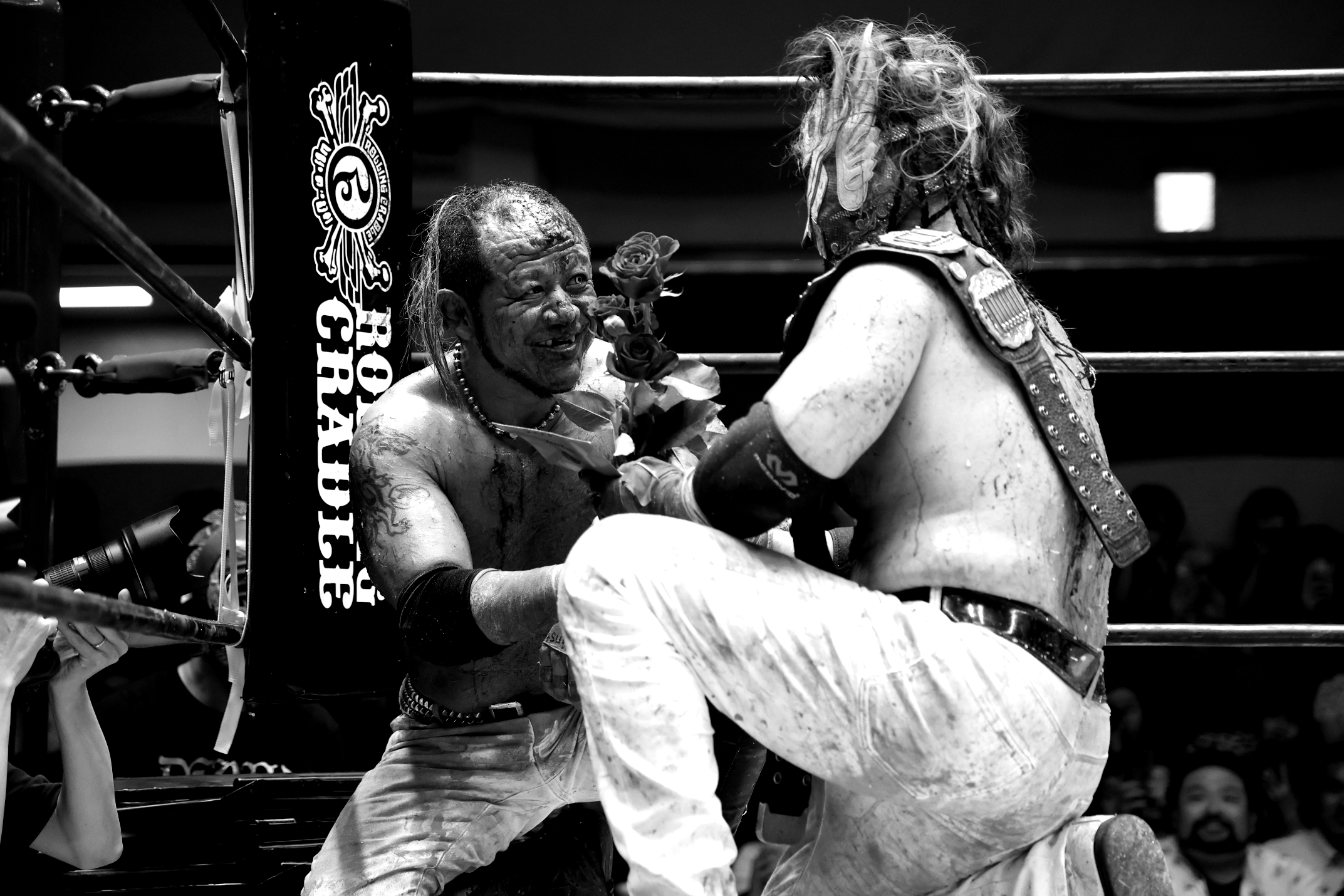 Kasai probably broke big on a global level because of his match with Ryuji Ito, the first deathmatch to ever get Tokyo Sports' match of the year honors back in 2009. I first got to know Kasai by watching this guy on Samurai TV slipping and falling on banana peels in the ring. Guys that can be as ludicrous as that, while still going harder than anyone as well… those are the coolest to me.
